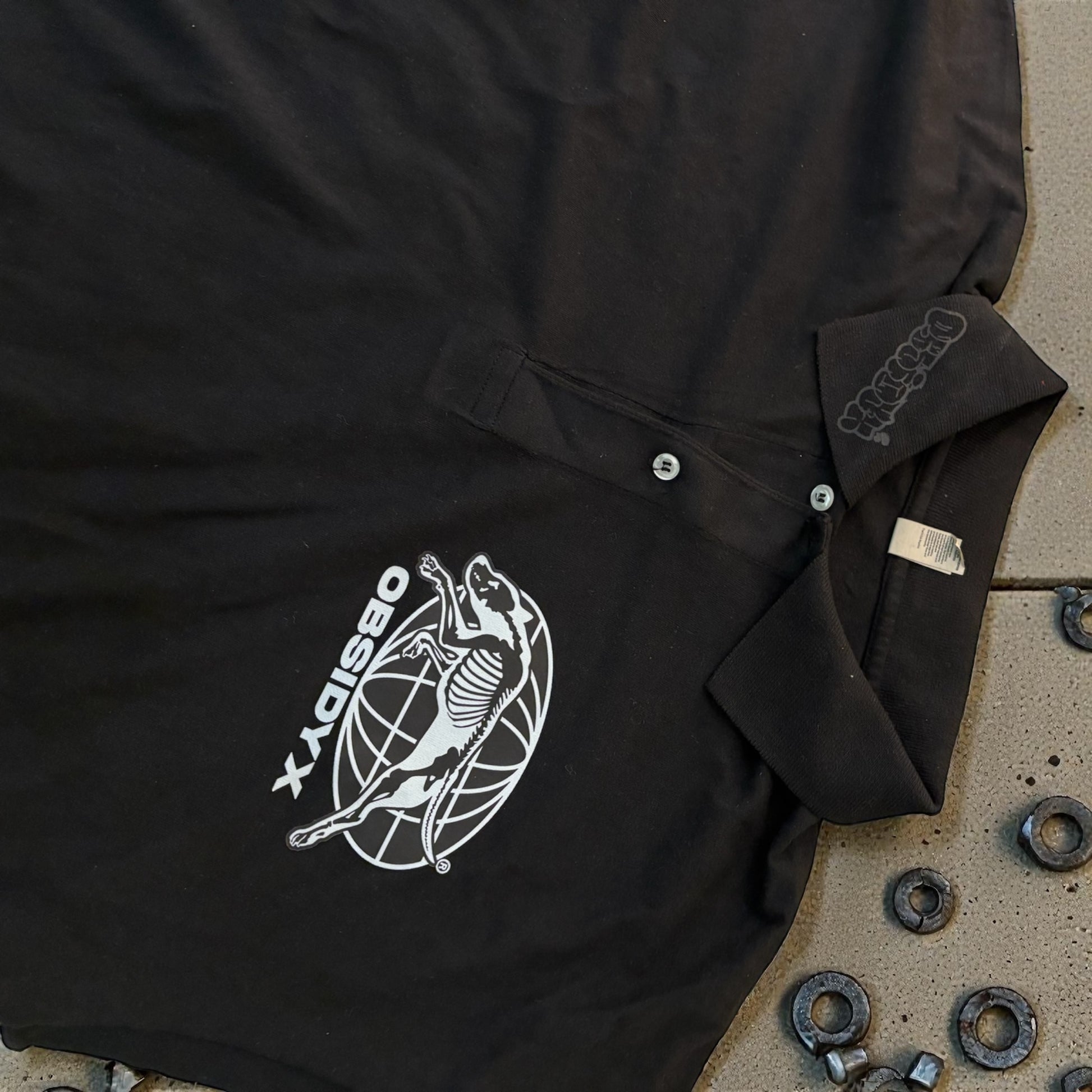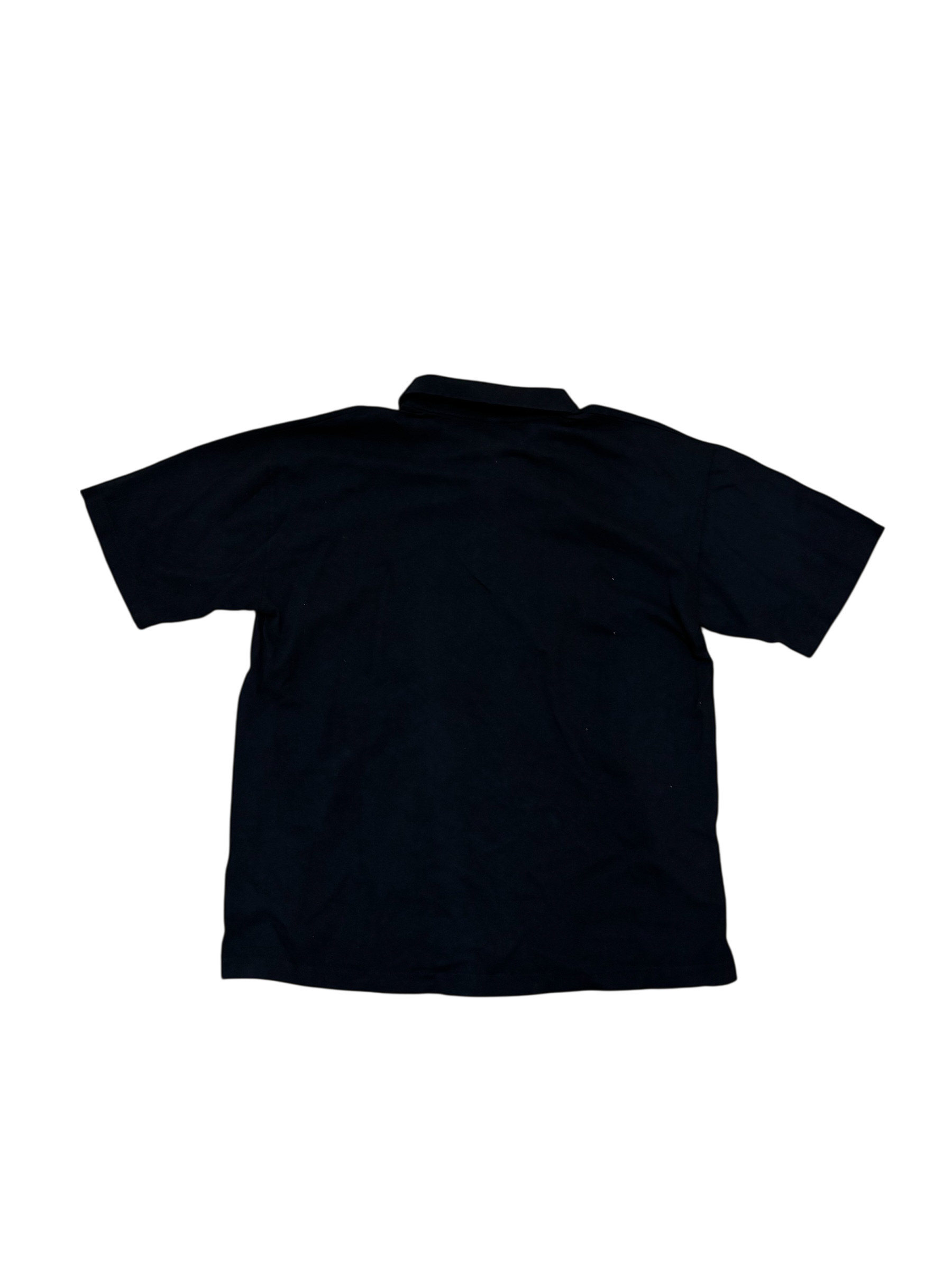 1 of 1 large size heavyweight collared short sleeve shirt. Featuring our 5” left chest greyhound print as well as a tone on tone 4” bubble letter print on the collar. This garment is pre shrunk.