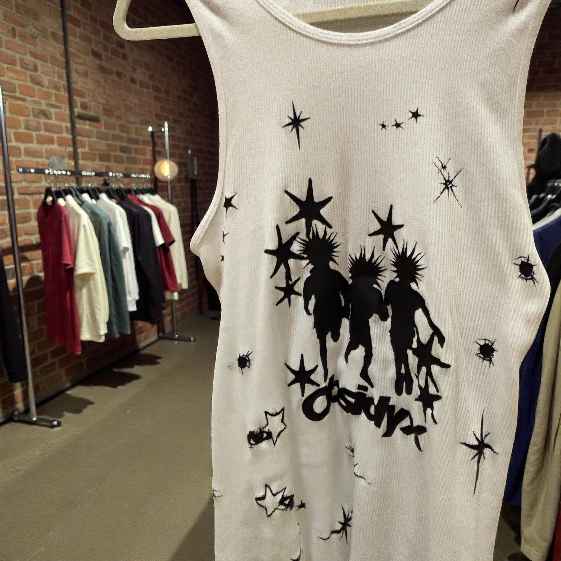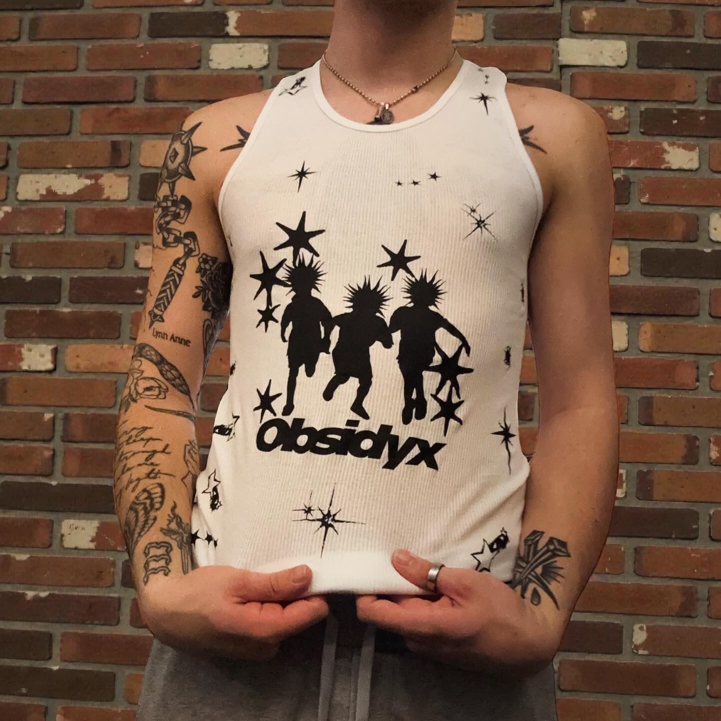 1 of 1 large men’s tank top. Featuring all around adornment prints as well as our new punks design at 8 inches. This garment is pre shrunk.